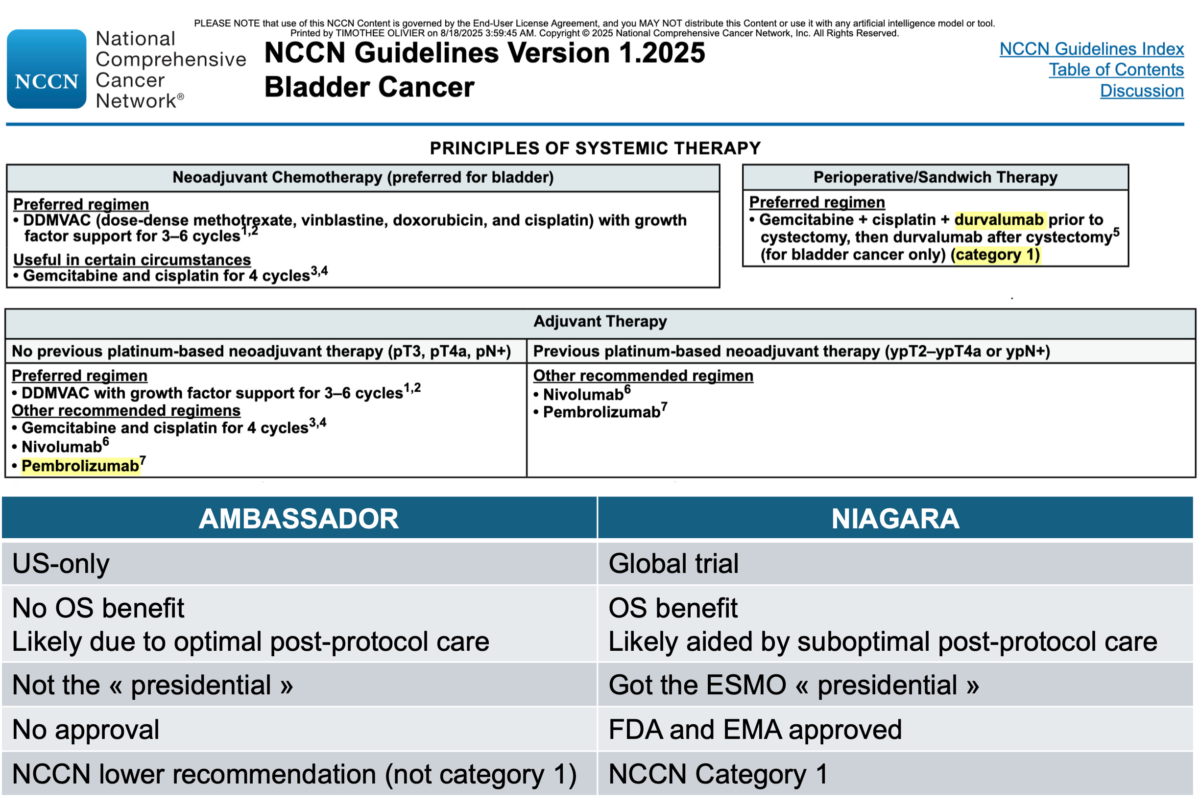 However, only NIAGARA demonstrated an overall survival gain. The side-by-side comparison was primarily aimed at highlighting that, in global trials like NIAGARA, a survival gain may be driven by the limited access to optimal care for patients who recur.