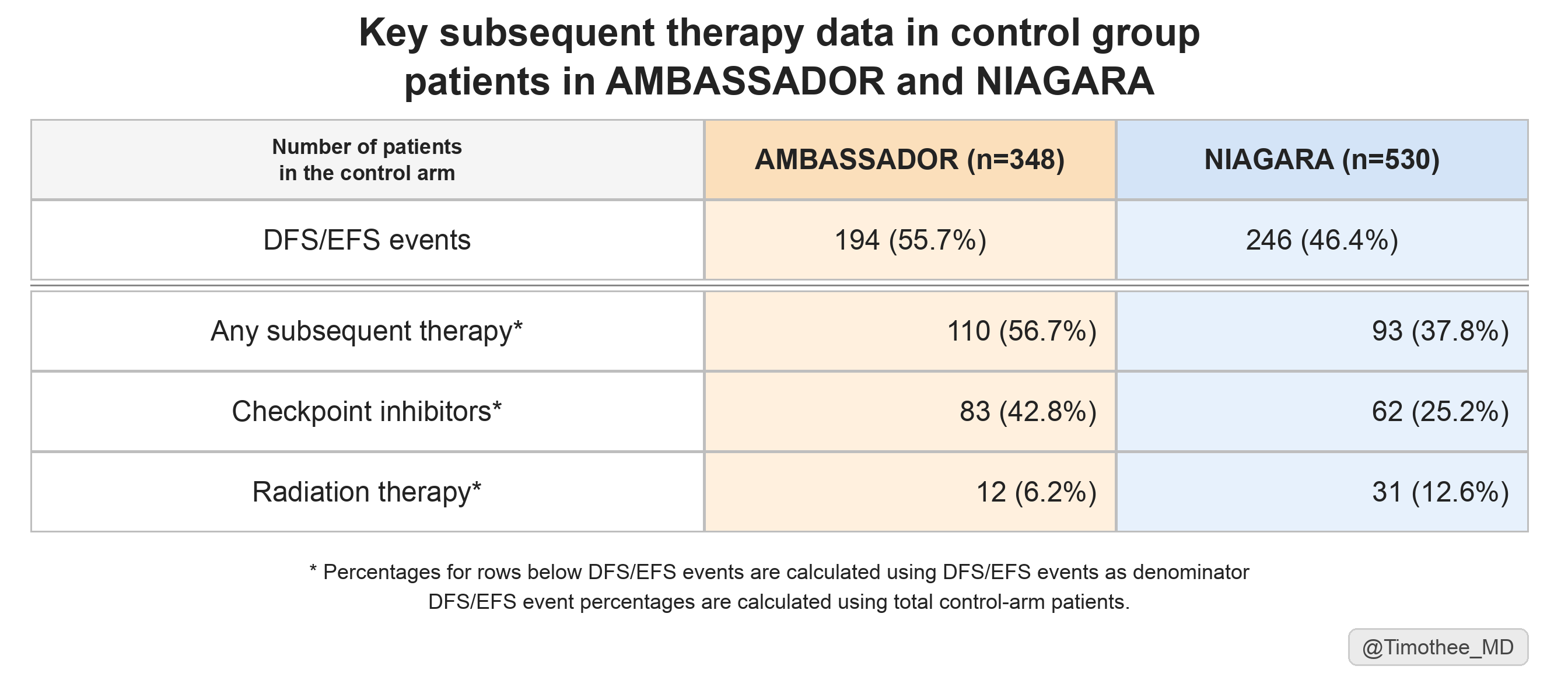a limited access to any subsequent therapy, 38% of patients with an EFS event in NIAGARA, significantly lower than 57% of patients with a DFS event in AMBASSADOR.