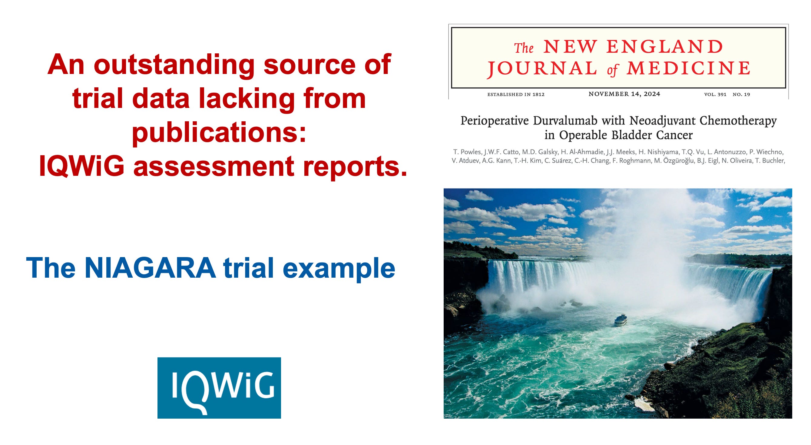 An outstanding source of trial data lacking from publications: IQWiG assessment reports. The NIAGARA trial example.